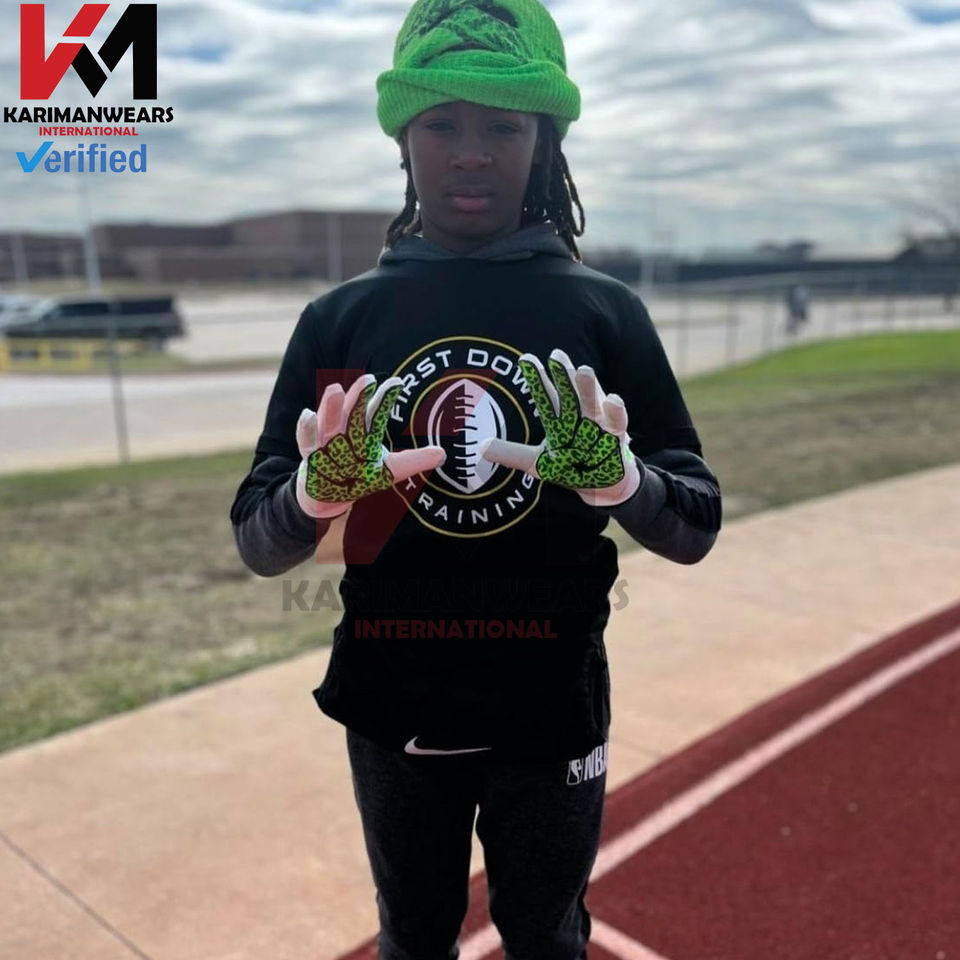 ถุงมืออเมริกันฟุตบอลแบบสั่งทำพิเศษรุ่นใหม่ล่าสุด พร้อมแผ่นกันลื่นที่ฝ่ามือและดีไซน์ระบายอากาศ