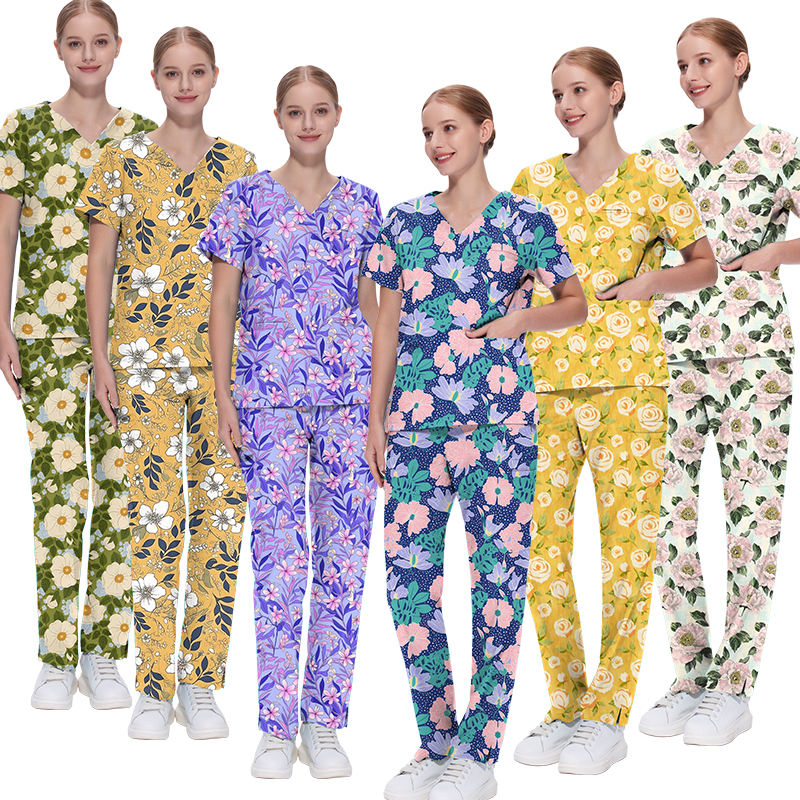 ชุดยูนิฟอร์มเสื้อสำหรับขัดฟันพิมพ์ลายสำหรับ100% กางเกงทรงตรงชุดยูนิฟอร์มผ้าคอตตอนแท้