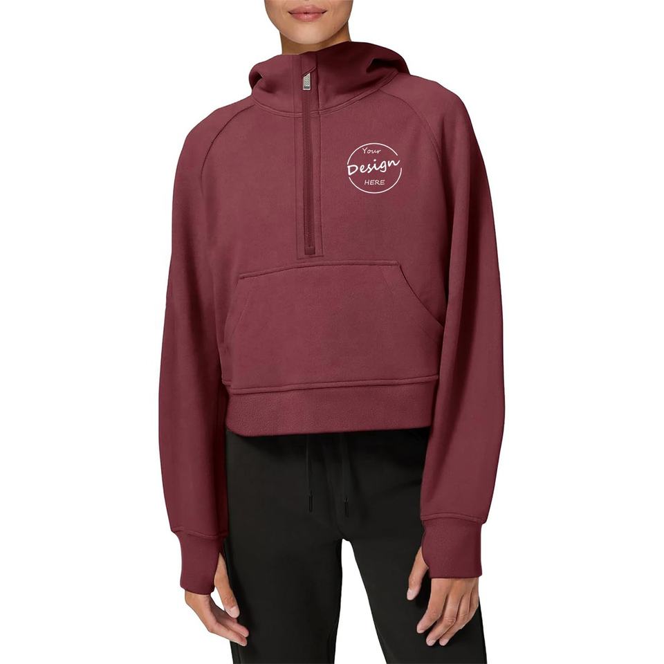 New Arrival Custom 1/4 Zip Gym Sports Fleece Hoodie Stand Collar with Thumb Hole and Windbreaker Winter Pocket Hoodie