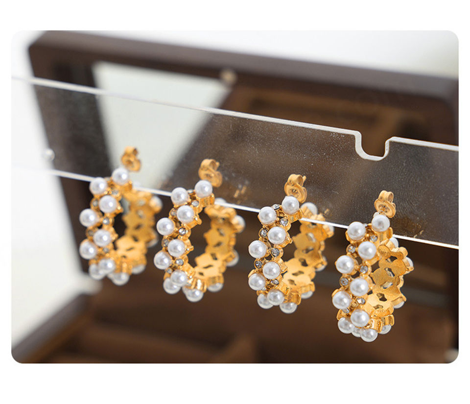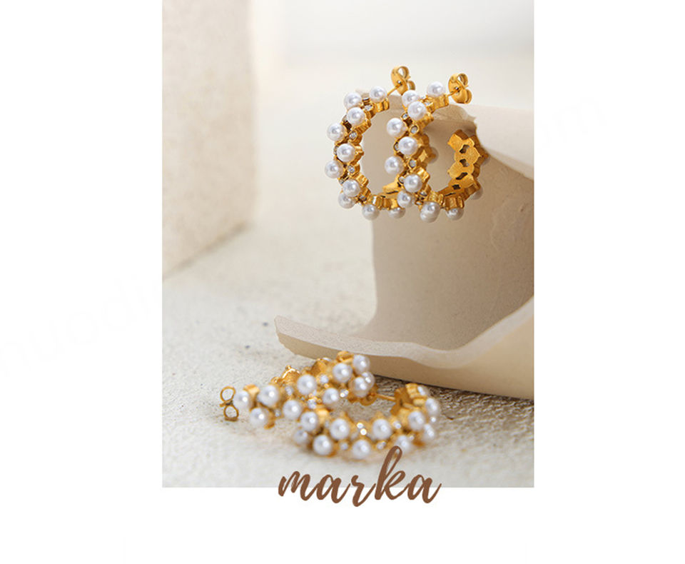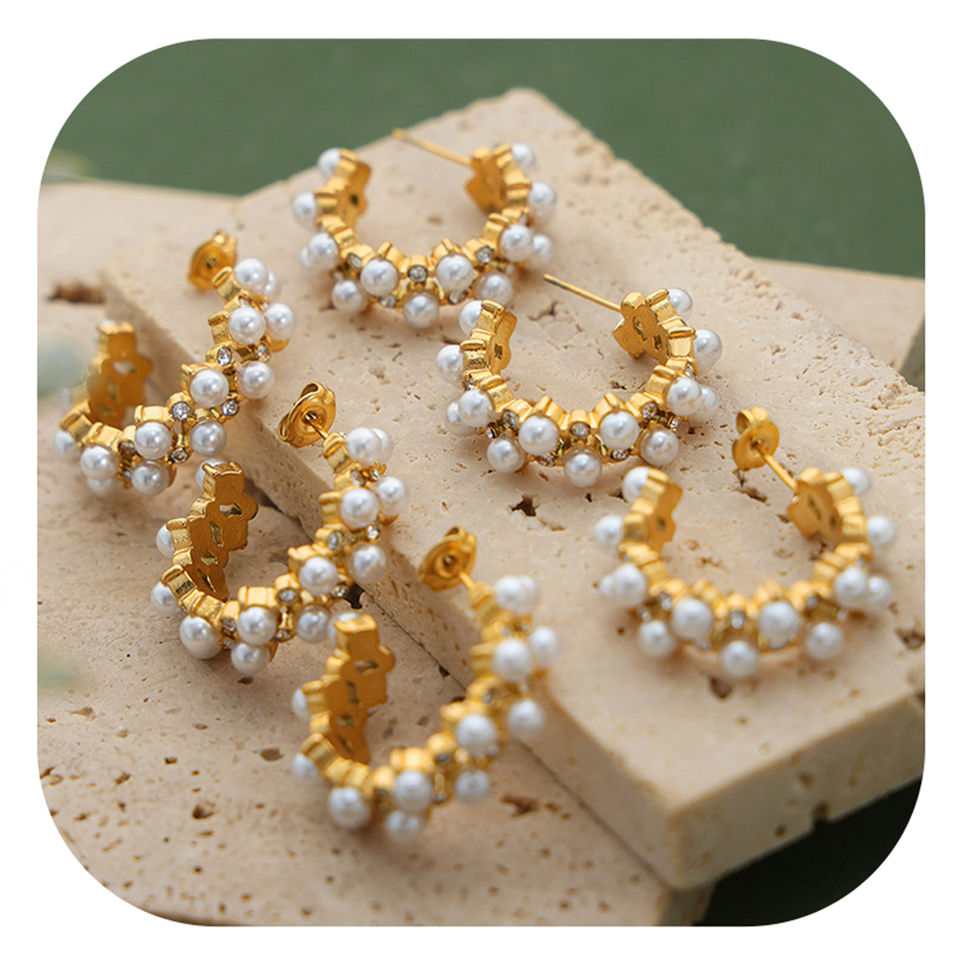 ต่างหูห่วงมุกชุบทอง 18k สแตนเลสกันน้ำ ดีไซน์ใหม่ แฟชั่นสำหรับผู้หญิง