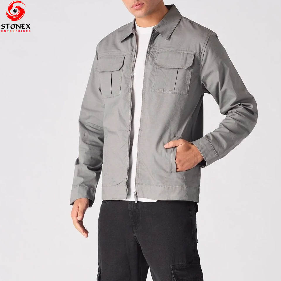 แจ็คเก็ตคาร์โก้คอตั้งผู้ชายแบบใหม่ สั่งทำขายส่ง แขนยาว กันลม สำหรับฤดูใบไม้ร่วงและฤดูหนาว มีหลายกระเป๋า คุณภาพสูง