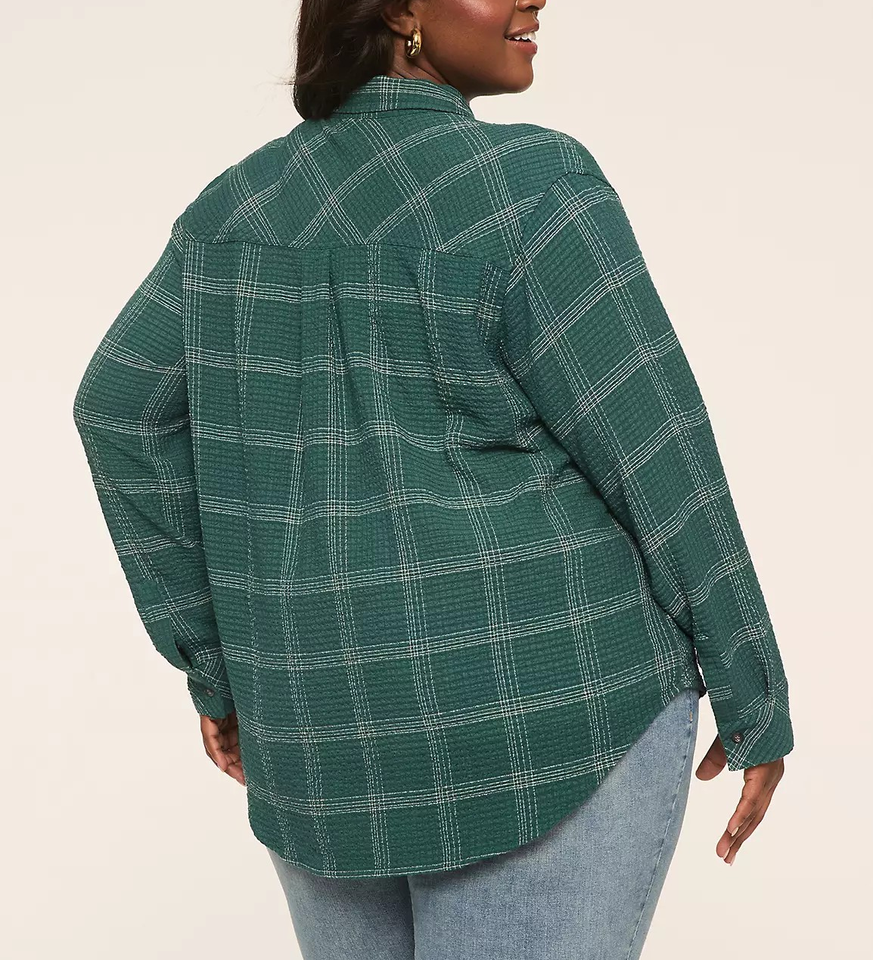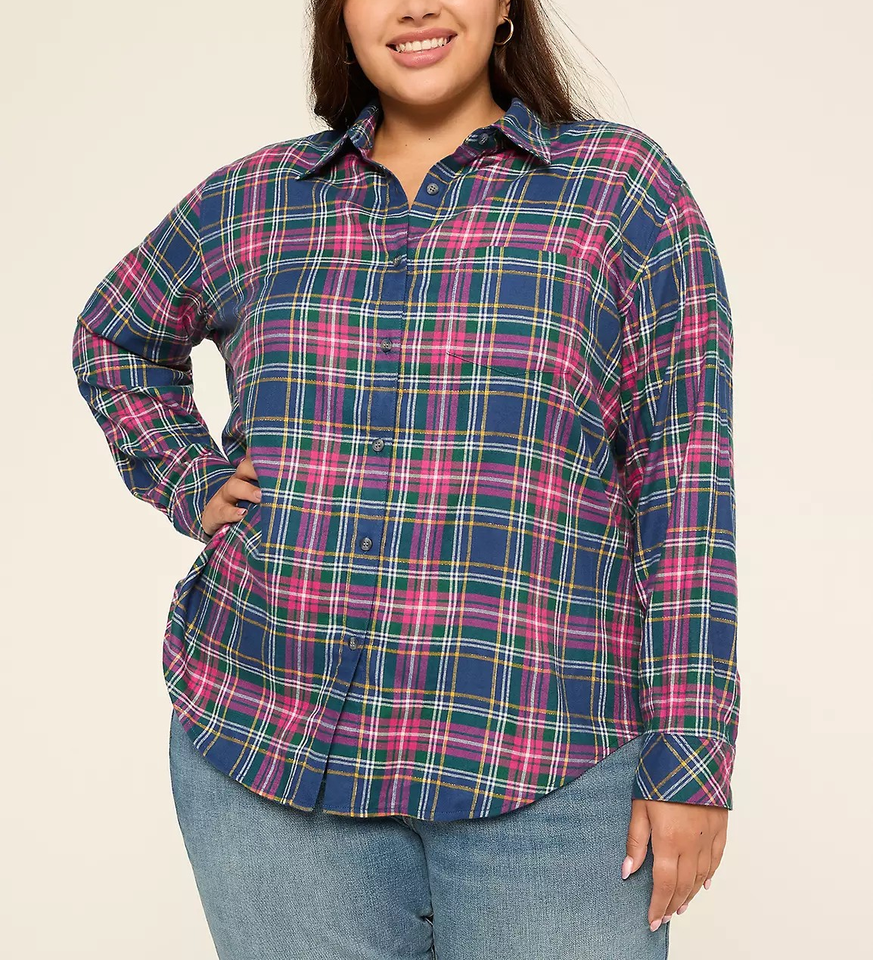 เสื้อเชิ้ตแฟลนเนลลายสก็อตแขนยาวสำหรับผู้หญิงแบบใหม่ล่าสุด สไตล์ลำลอง มีกระเป๋า ผ้าลายสก็อตยับ ติดกระดุม