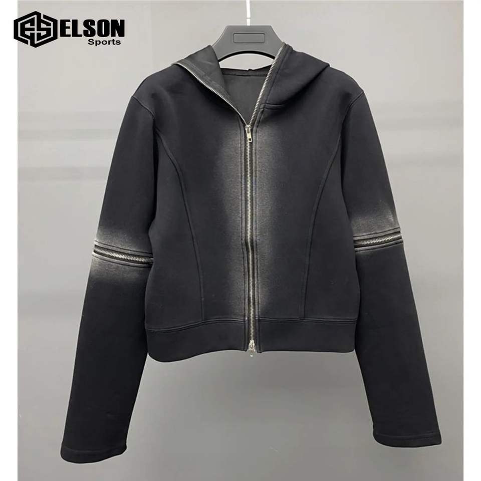 เสื้อสเวตเตอร์มีฮู้ดโอเวอร์ไซส์สำหรับผู้ชายเสื้อมีซิปหน้าเต็มตัวเสื้อแนวสตรีทซักได้ตามต้องการ