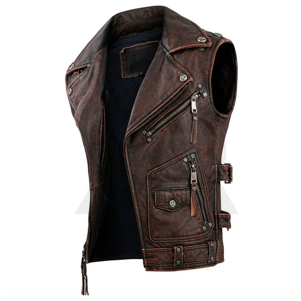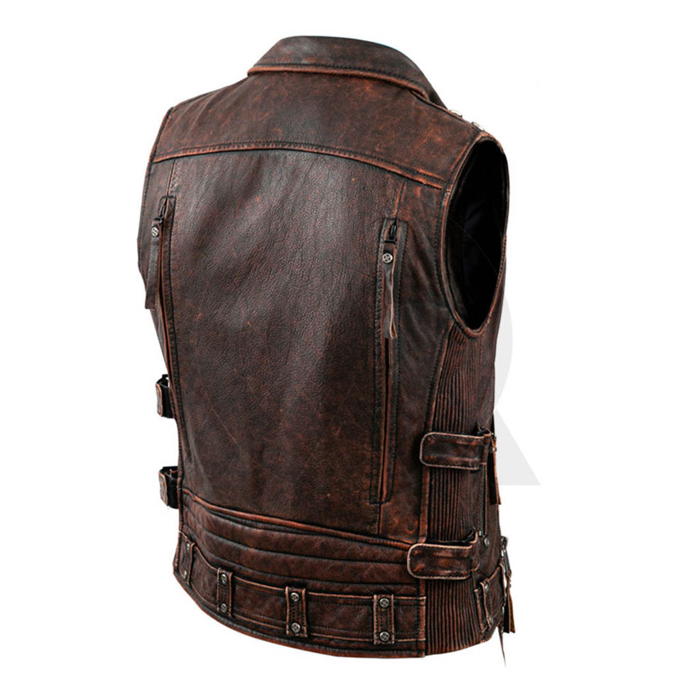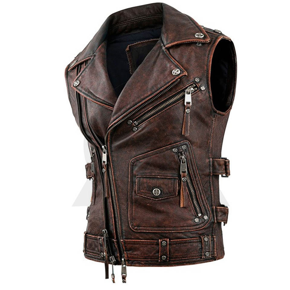 เสื้อกั๊กสำหรับขี่มอเตอร์ไซค์หนังผ้าใบคอตั้งระบายอากาศสำหรับผู้ชายมาใหม่ออกแบบตามสั่ง