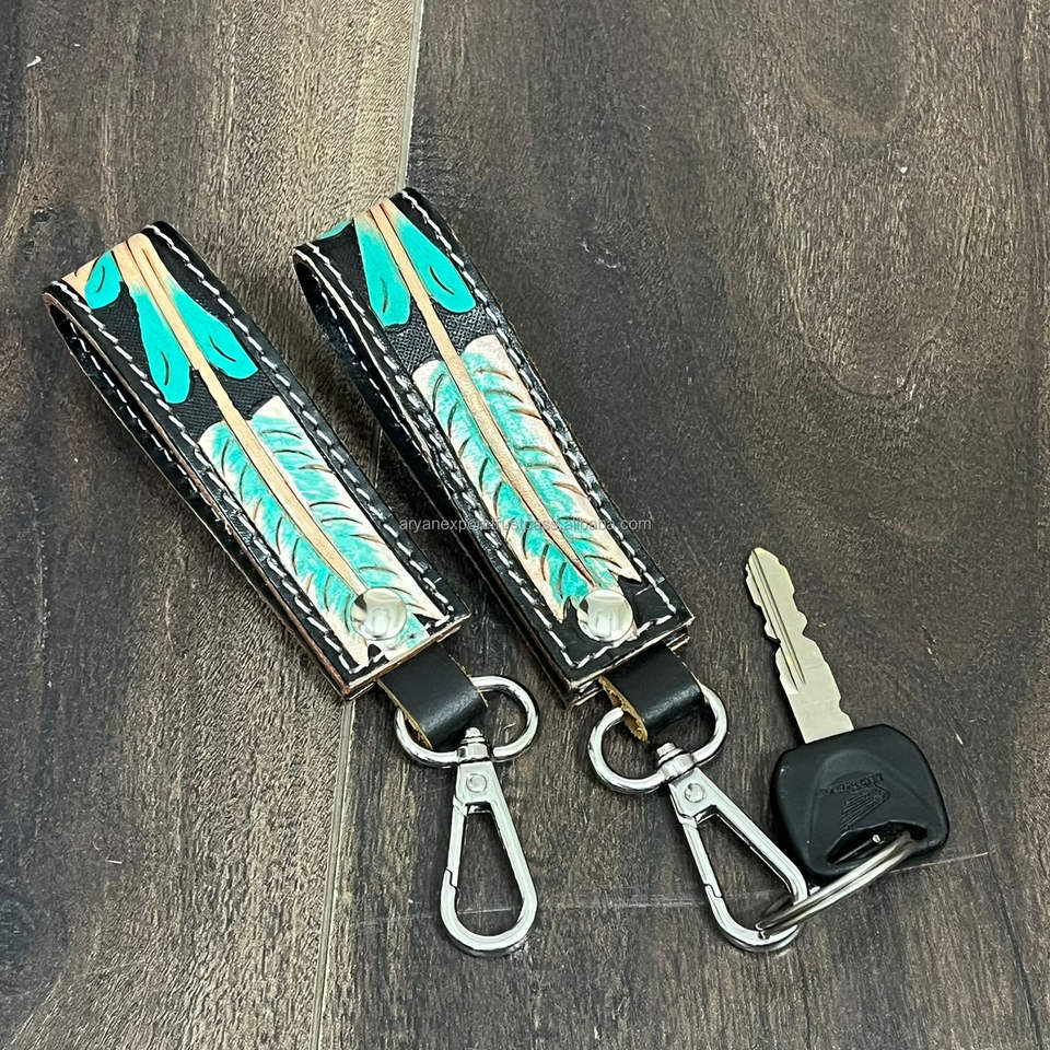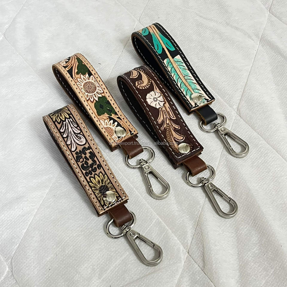 พวงกุญแจหนังวัวแท้สลักลายด้วยมือแบบสั่งทำใหม่ล่าสุด พร้อมตัวล็อคโลหะ เหมาะสำหรับเป็นของขวัญ