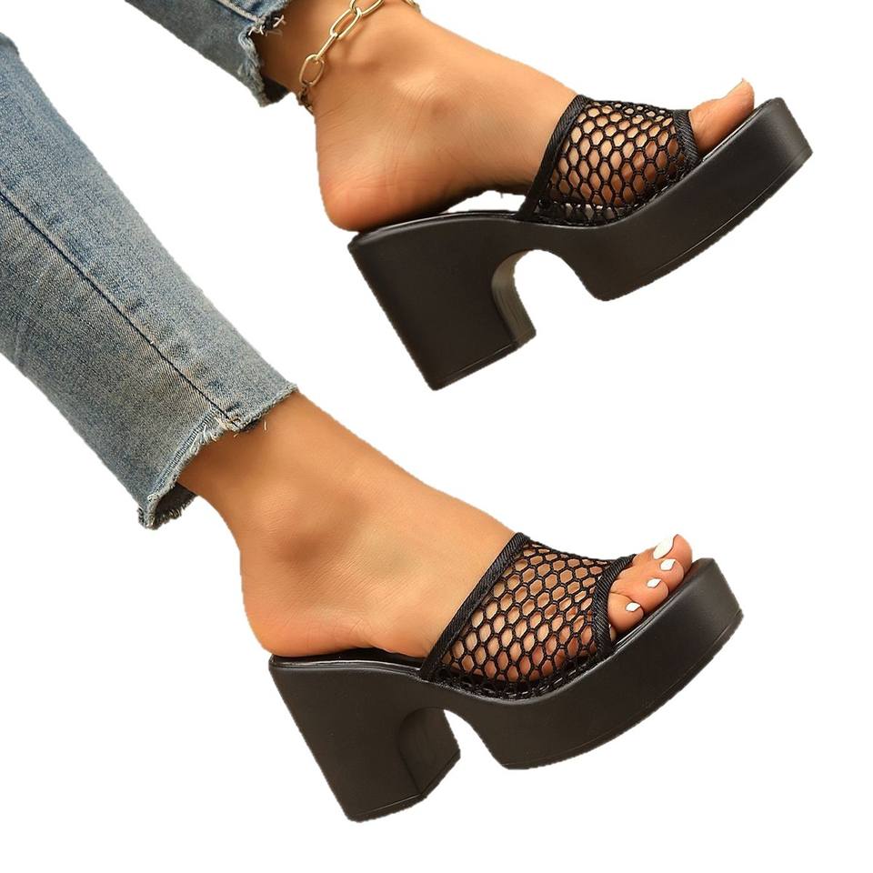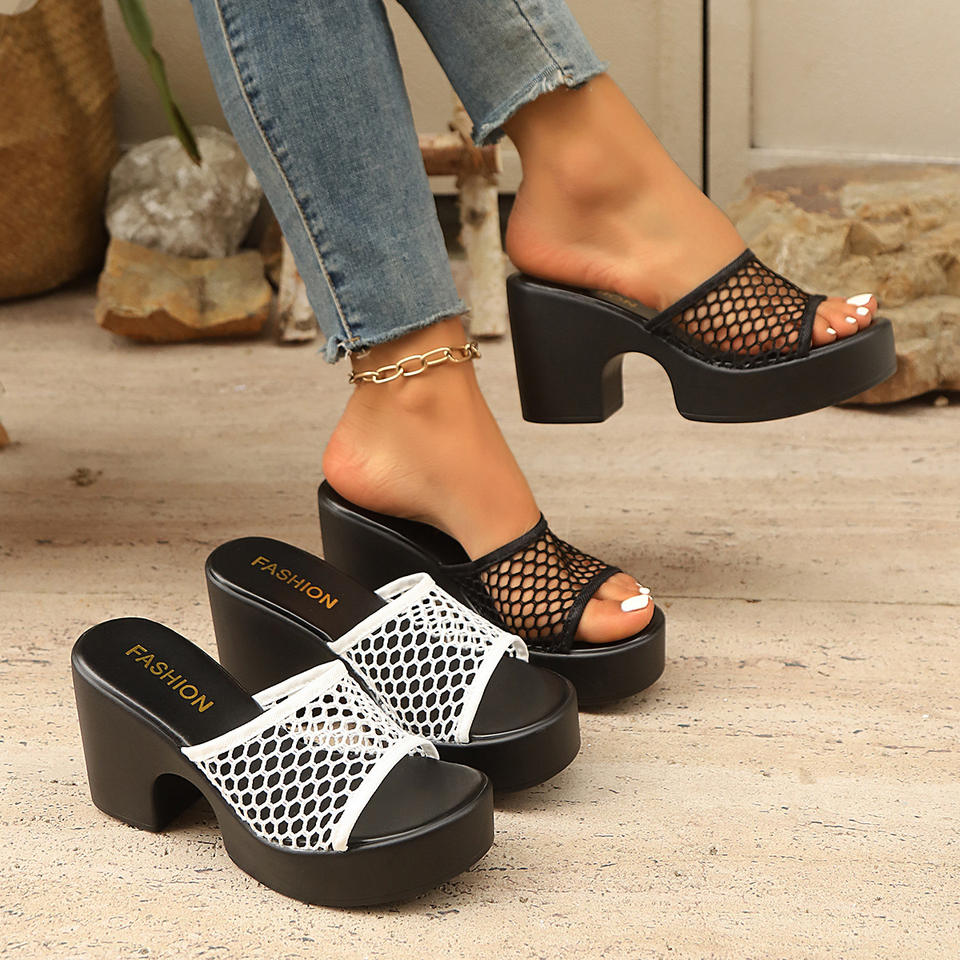 รองเท้าแตะส้นสูงตัดทรงใหม่สำหรับผู้หญิง, แฟชั่นขนาดใหญ่พิเศษพื้นรองเท้าหนาเรียบหรูมาใหม่สำหรับฤดูร้อน