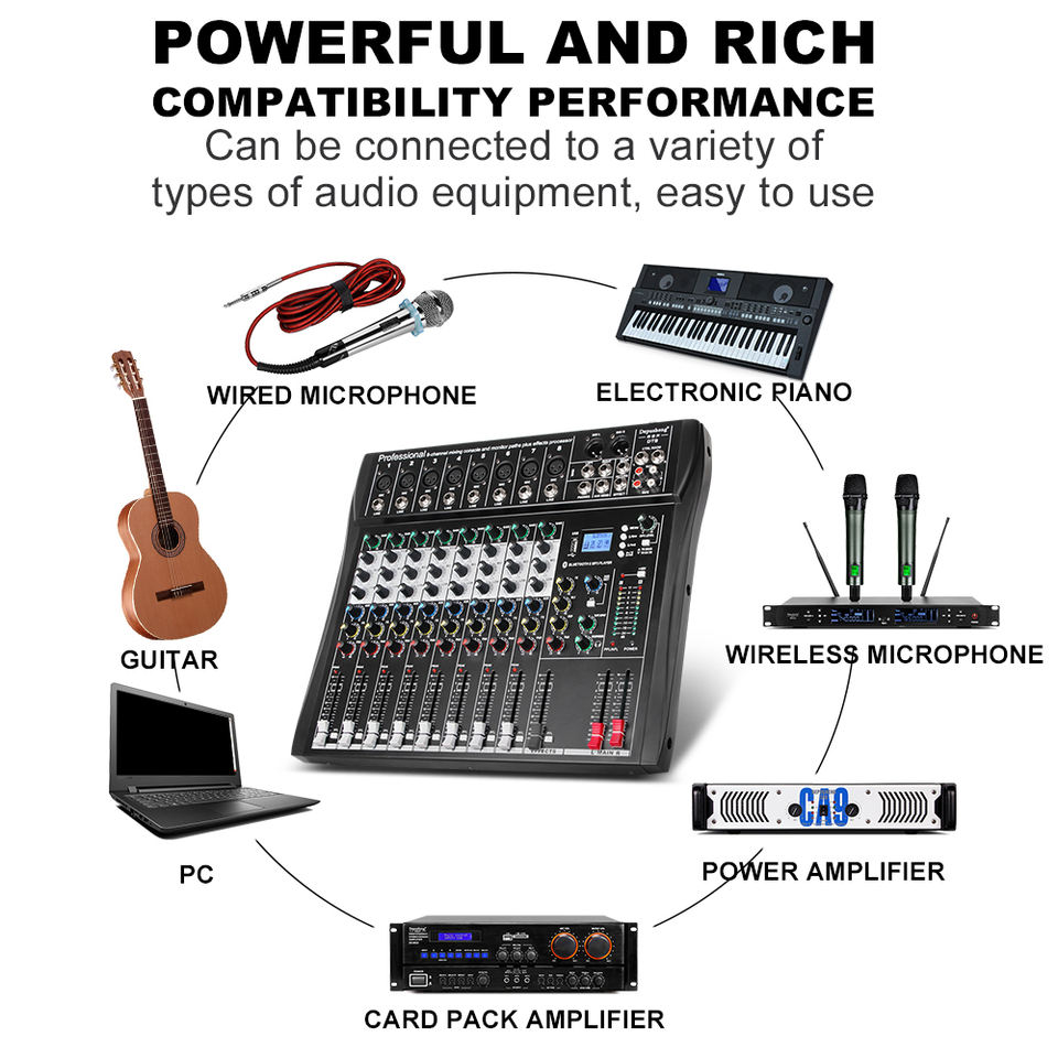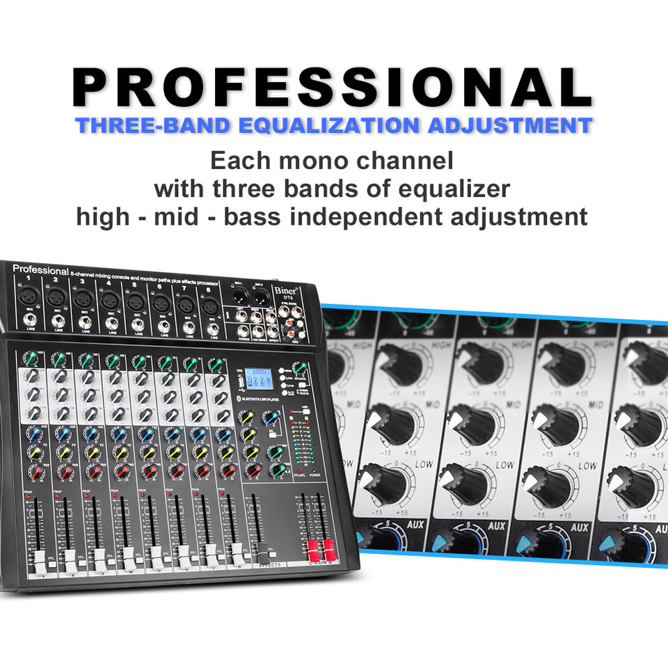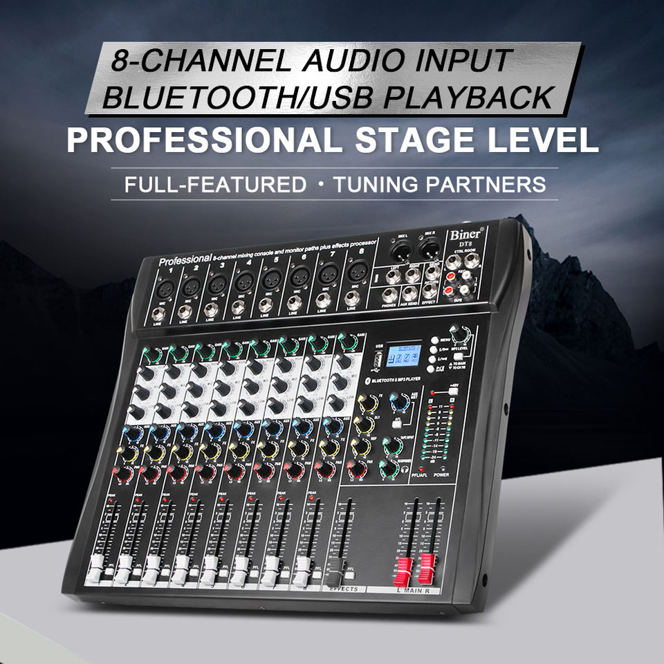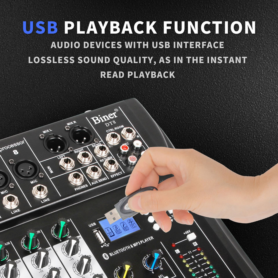 มิกเซอร์เสียงโลหะ 8 แชนแนล รุ่นใหม่ DT8 ระดับมืออาชีพ พร้อมช่องต่อ USB อินพุต พลังแฟนทอม 48V เสียงรอบทิศทาง สำหรับการแสดงคาราโอเกะ