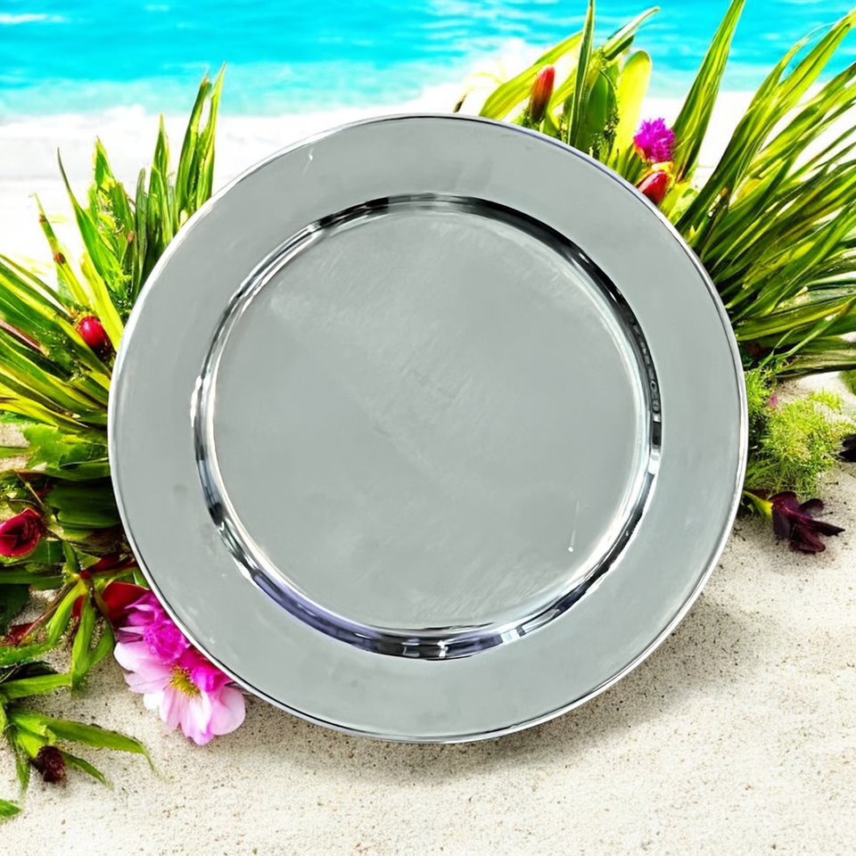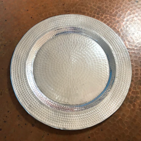 จานที่ชาร์จสำหรับตกแต่งสินค้ามาใหม่แผ่นโลหะชุบสีขาวทำด้วยมือสำหรับตกแต่งบ้านและห้องครัว