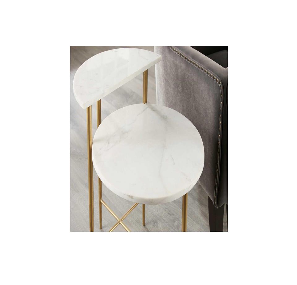 โต๊ะข้างโต๊ะหินอ่อนสีขาวธรรมชาติขาเหล็กยืดได้สำหรับเฟอร์นิเจอร์บ้าน