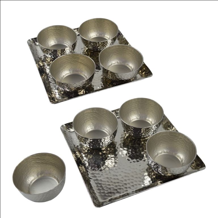 การออกแบบมาใหม่ชุดของสี่ขนมชามและถาดพร้อมกับการออกแบบโลหะแข็งชามหวานหลายสีจบ