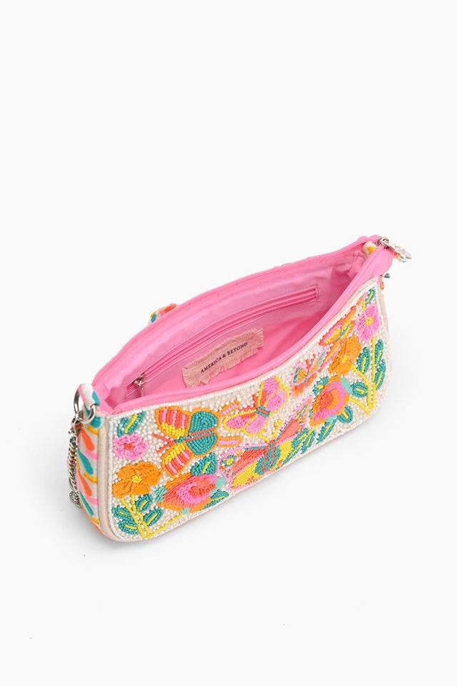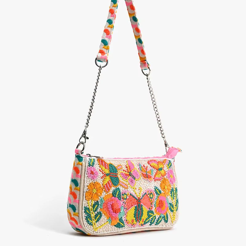 กระเป๋าคลัทช์ผู้หญิงดีไซน์เนอร์รุ่นใหม่ล่าสุด ผ้าฝ้ายคลาสสิก ประดับลูกปัด กระเป๋าสะพายข้าง สายโซ่ปรับแต่งได้
