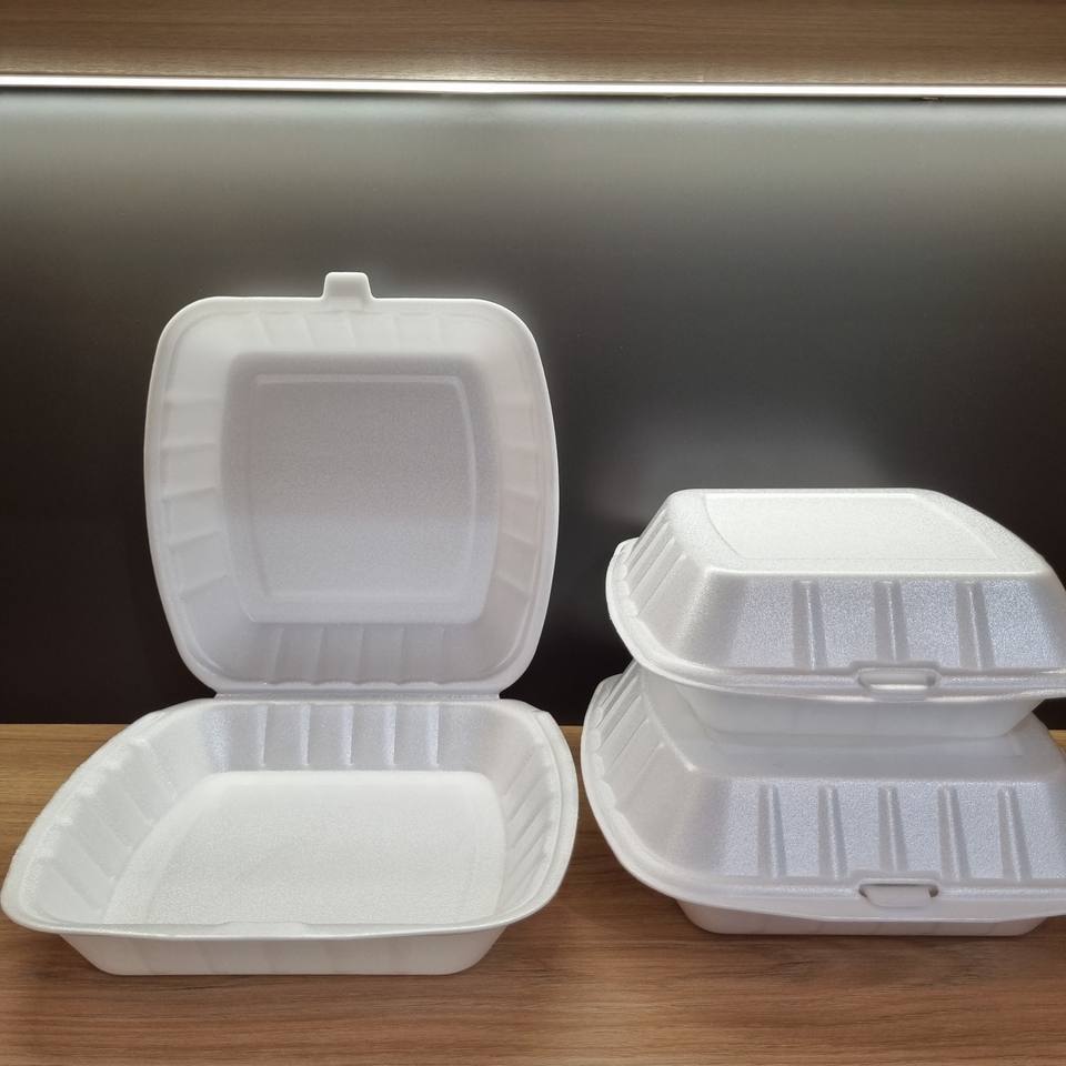 แผ่นโฟมอาหารแบบใช้แล้วทิ้งถาดภาชนะกล่องอาหารกลางวันพร้อมฝาปิดสำหรับนำออกไป