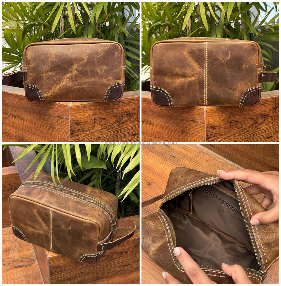 กระเป๋าเครื่องอาบน้ำหนังใส่ของใช้ในห้องน้ำสำหรับผู้ชายชุด Dopp ทำด้วยมือพร้อมที่จับจัดระเบียบสำหรับการแต่งตัวสินค้าที่จำเป็น