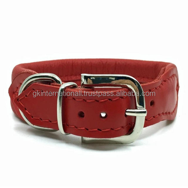New Arrival Dog Accessories Pet Supplies Wholesale Custom Red Leather Dog Collar with Cow Softy Padding Stitched & Brass Fitting