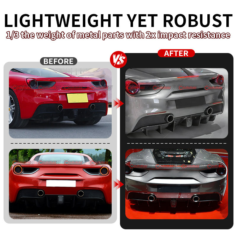 ดิฟฟิวเซอร์หลังคาร์บอนไฟเบอร์แบบแห้งรุ่นใหม่ พร้อมฝาครอบไฟตัดหมอกหลัง สำหรับอะไหล่รถยนต์เฟอร์รารี่ 488