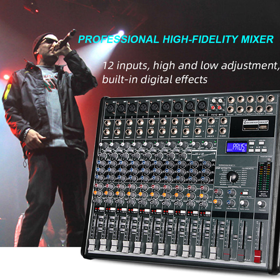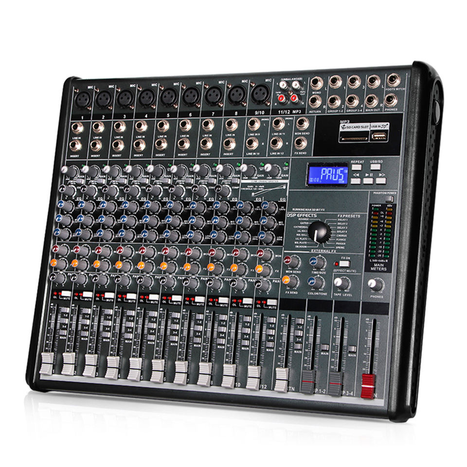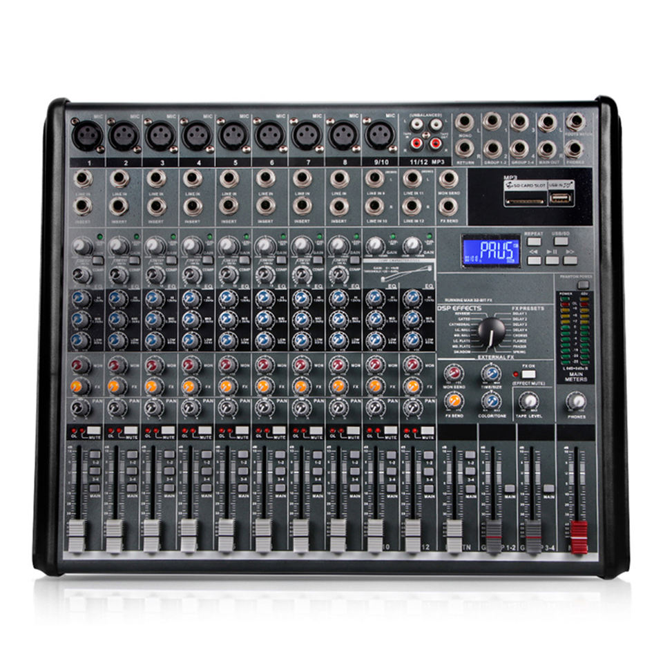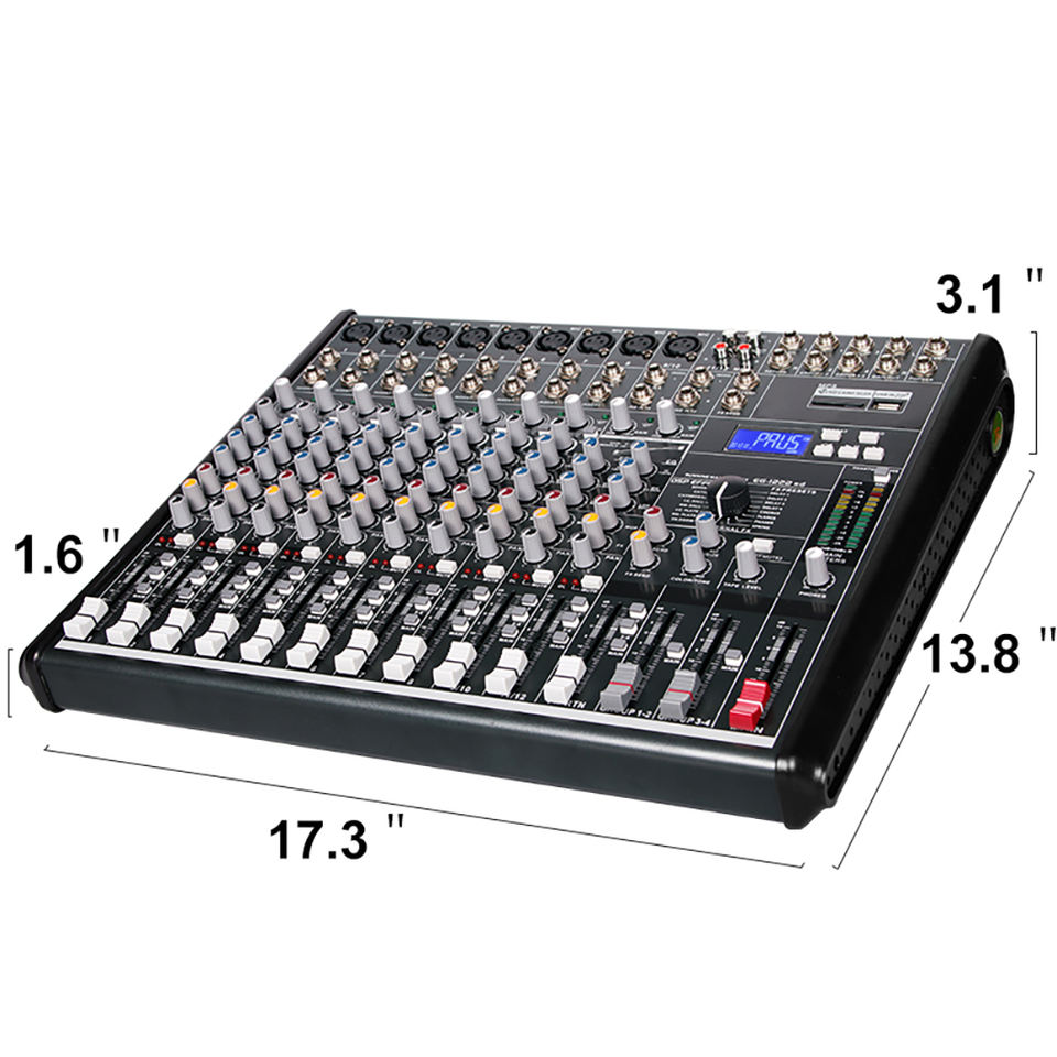 มิกเซอร์ดิจิตอลสำหรับดีเจ รุ่นใหม่ EG1222SD ระดับมืออาชีพ 12 แชนแนล ตัวเครื่องโลหะ พร้อมเอฟเฟกต์ในตัว 16 แบบ รีเวิร์บ และเล่นไฟล์ MP3 ได้