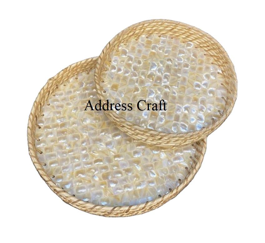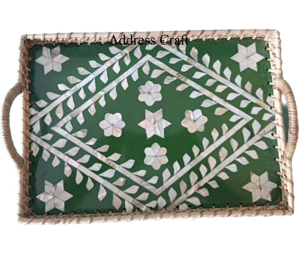 ถาดหวายและไม้ไผ่สานพร้อมฝังมุกสินค้าใหม่เป็นมิตรกับสิ่งแวดล้อมเครื่องครัวแฮนด์เมด