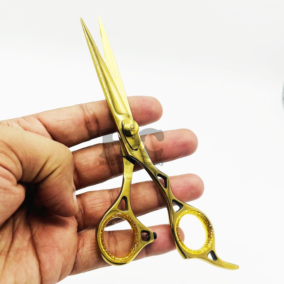 กรรไกรตัดผมสแตนเลสด้ามจับทำจากยางด้ามจับด้ามจับตรงสำหรับร้านเสริมสวยกรรไกรตัดผม