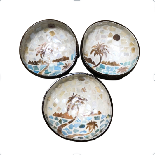 ชามมะพร้าวธรรมชาติที่ออกแบบมาใหม่เป็นมิตรต่อสิ่งแวดล้อมผลิตจากโรงงานเวียดนามพร้อมตัวฝังมุก