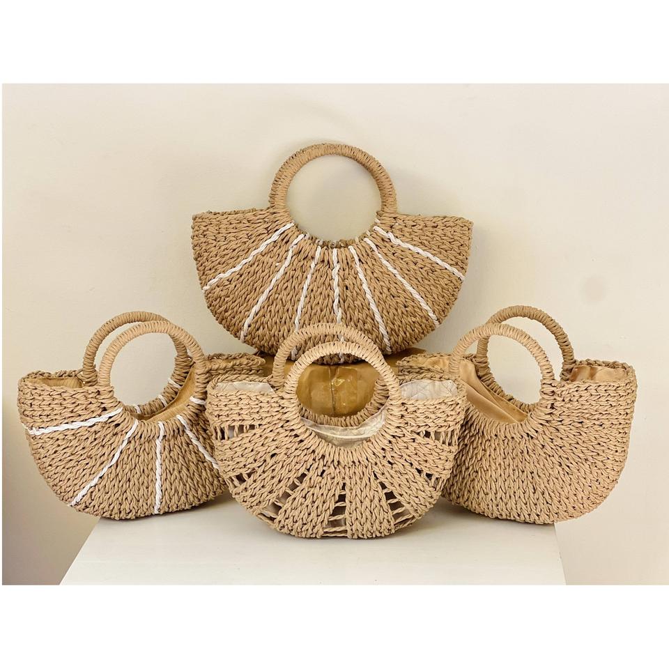 กระเป๋าสะพายไหล่ผักตบชวาทรงรีรูปร่าง