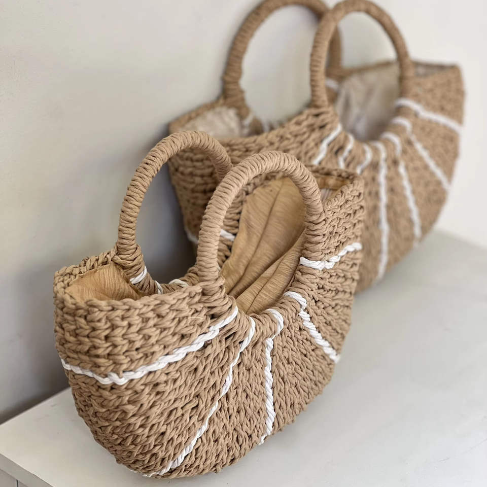 กระเป๋าสะพายไหล่ลายวินเทจ ทำจากวัสดุธรรมชาติ ทนทาน เปิด-ปิดง่าย งานฝีมือจากผักตบชวา ลวดลายเรียบง่าย มีหูหิ้วสองข้าง สินค้ามาใหม่