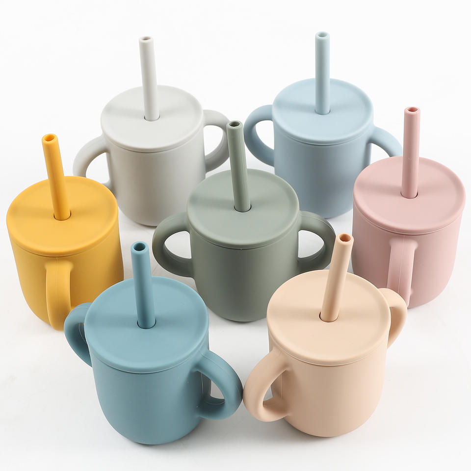 แก้วน้ำดื่มสำหรับเด็กเป็นมิตรต่อสิ่งแวดล้อมใช้ซ้ำได้ถ้วยฝึกดื่มซิลิโคน