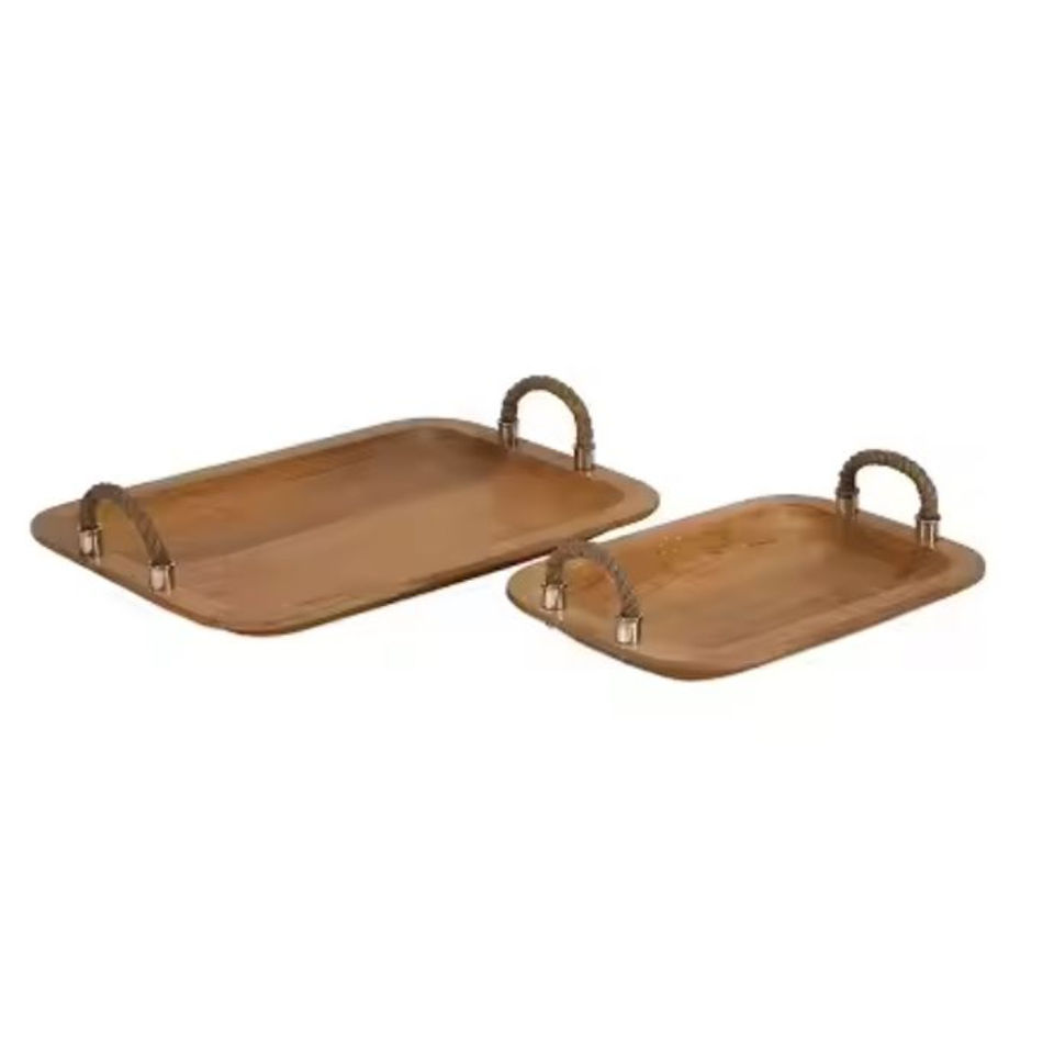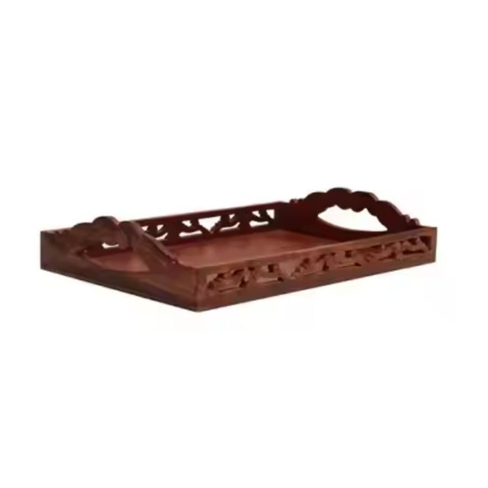 มาใหม่หรูหราสีน้ําตาลถาดเสิร์ฟอาหารไม้พร้อมที่จับที่กําหนดเองคุณภาพบ้านและห้องครัว
