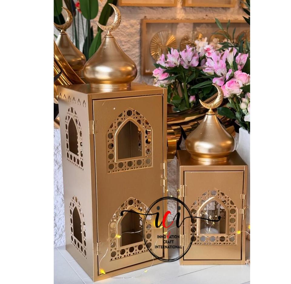 Elegant Gold-Finished Floor Lantern Unique Design Table Decor for Ramadan Eid Hajj Festival Party New Tableware Decorative