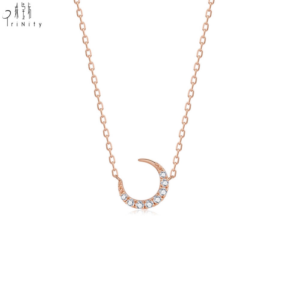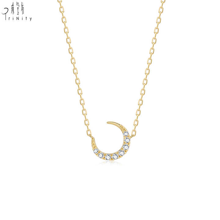 สร้อยคอทองคำแท้ 18K ดีไซน์รูปพระจันทร์ ประดับเพชรแท้ สำหรับผู้หญิง สวมใส่ได้ทุกวัน