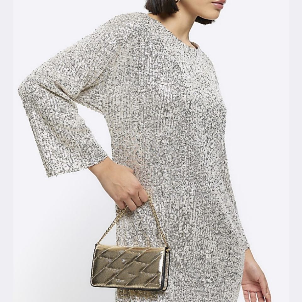 เดรสสั้นทรงเข้ารูปประดับเลื่อมสีเงินสุดหรู ดีไซน์ใหม่ล่าสุด คอปก แขนสามส่วน เหมาะสำหรับงานปาร์ตี้และงานค็อกเทล