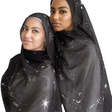 ฮิญาบพิมพ์ลายหินอ่อนผ้าซาตินโพลีเอสเตอร์สไตล์อาหรับมุสลิมมาใหม่