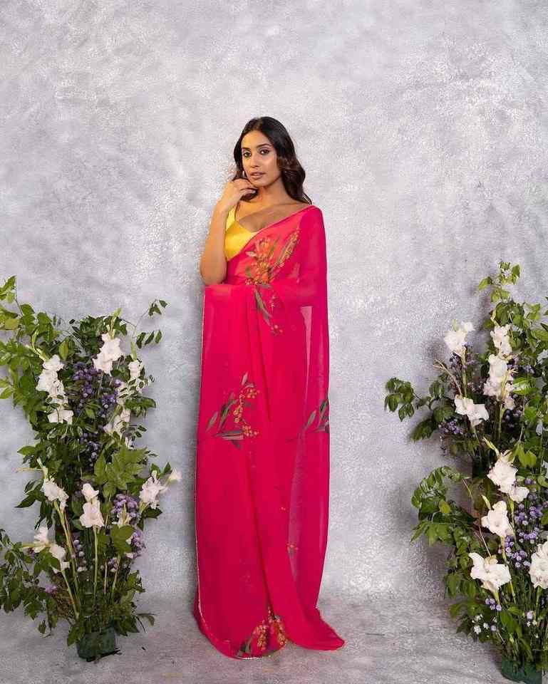 ชื่อผลิตภัณฑ์:ส่าหรีผ้าไหม georgette ที่สวยงามด้วยการพิมพ์ดิจิตอลดอกไม้ที่สวยงาม