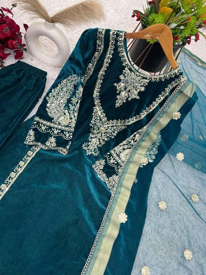 ชุดสูทสไตล์ชนเผ่ามาใหม่ชุดสูทผ้ากำมะหยี่วิสคอสคุณภาพสูงผ้ากำมะหยี่วิสคอสเสื้อและล่างพร้อม dupatta