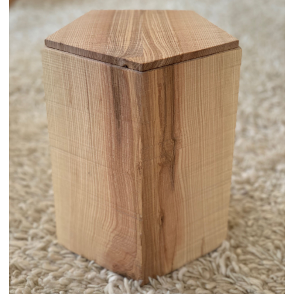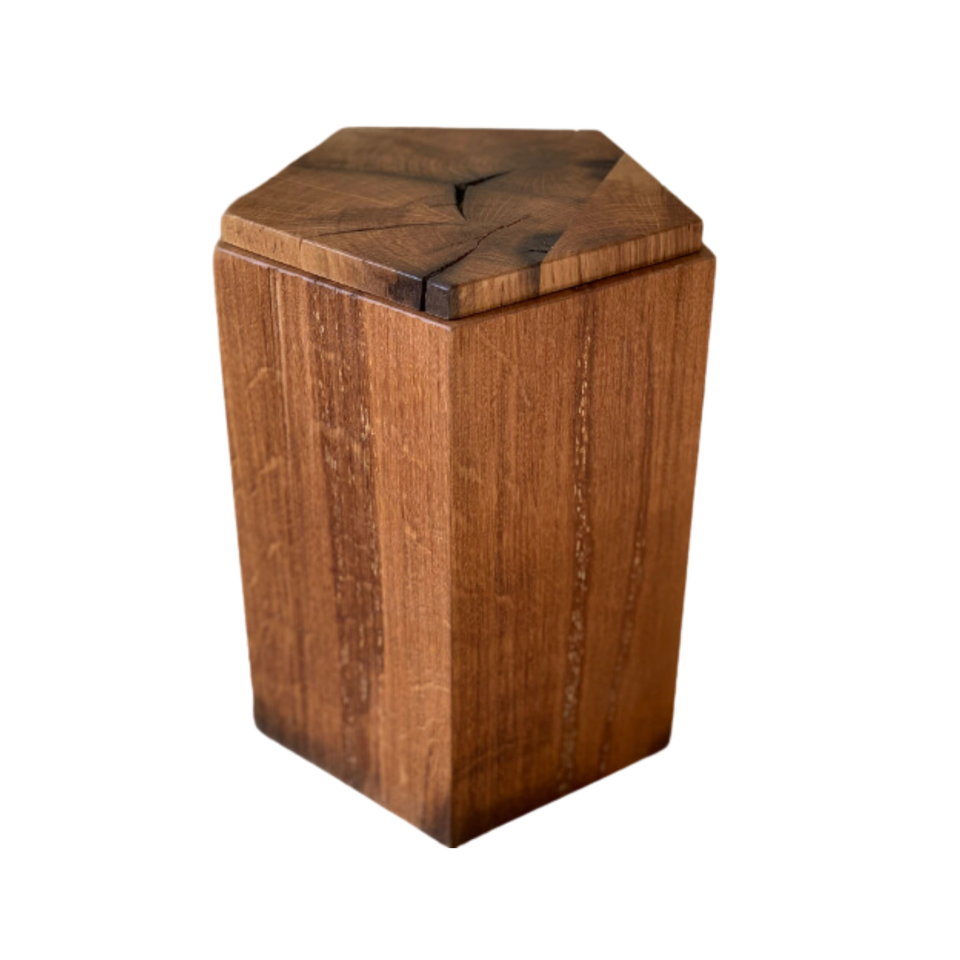 New Arrival European Style Handmade Pentagon Wood Urn for Ashes Wholesale Cremation Urn From Vietnam Factory Funera Supplies