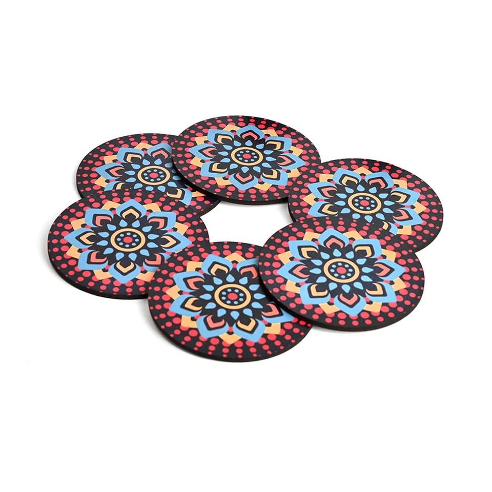 ชุดที่รองแก้วไม้ทรงกลมพิมพ์ลายแมนดาลาสไตล์ยุโรปมาใหม่4ชิ้นมีขนาด3.5นิ้วสำหรับตกแต่งบ้าน