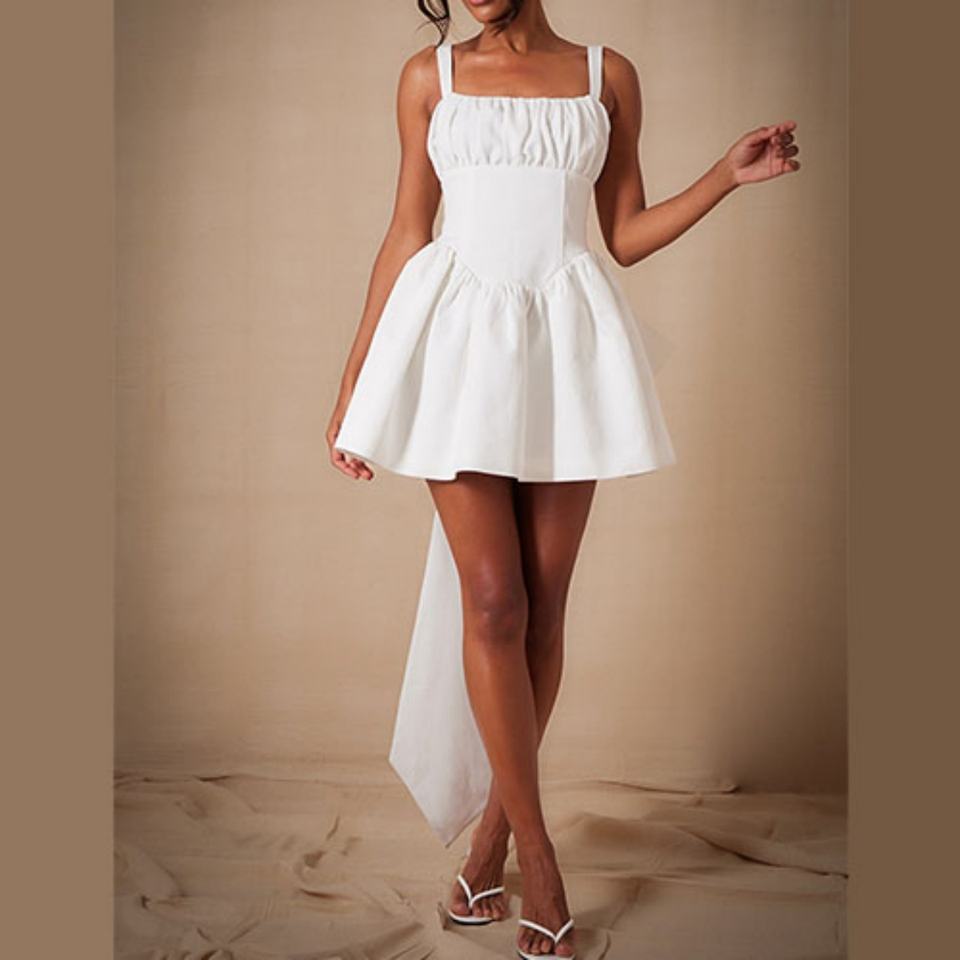 เดรสแฟชั่นมาใหม่สำหรับฤดูร้อน คอเหลี่ยม ทรงเข้ารูป เอวคอด เซ็กซี่ แต่งระบายโบว์ แขนกุด มินิเดรสสุดหรู
