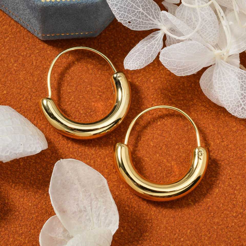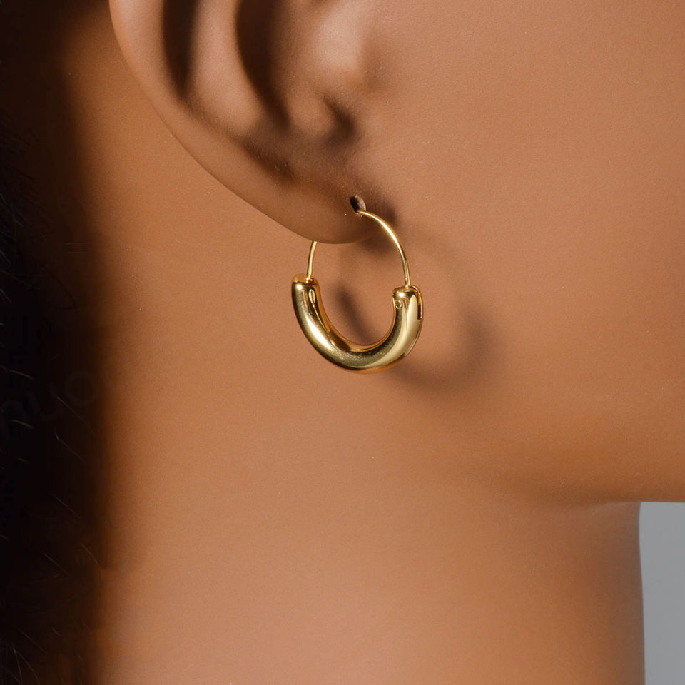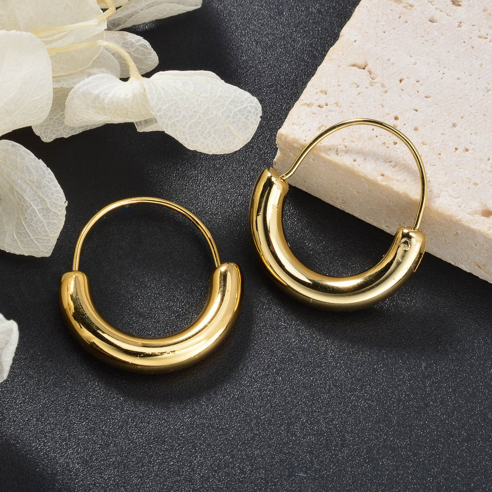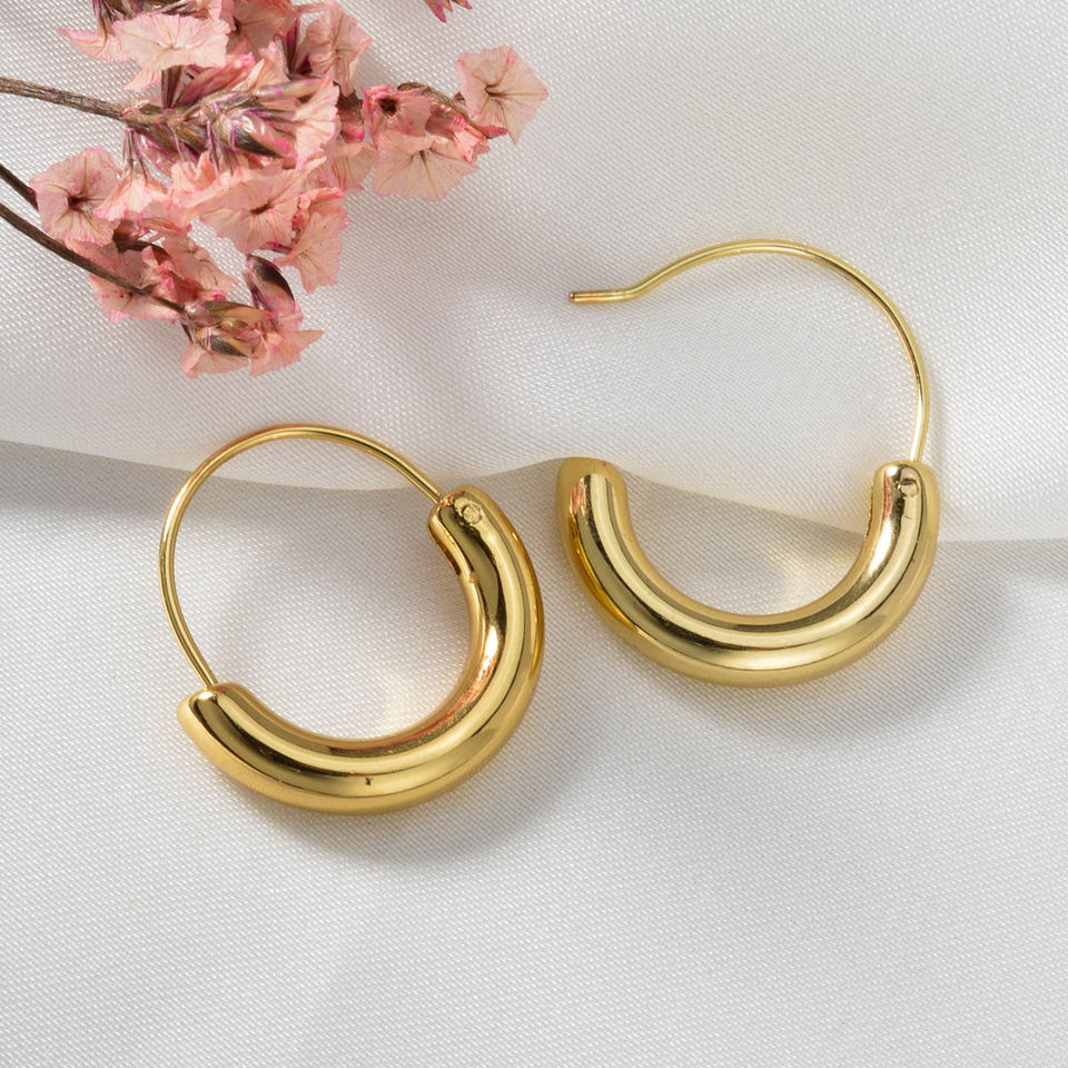 ต่างหูห่วงทรงเรขาคณิตทันสมัย ชุบทอง 18k สแตนเลสกันน้ำ ดีไซน์ใหม่ล่าสุด สำหรับทุกเพศ
