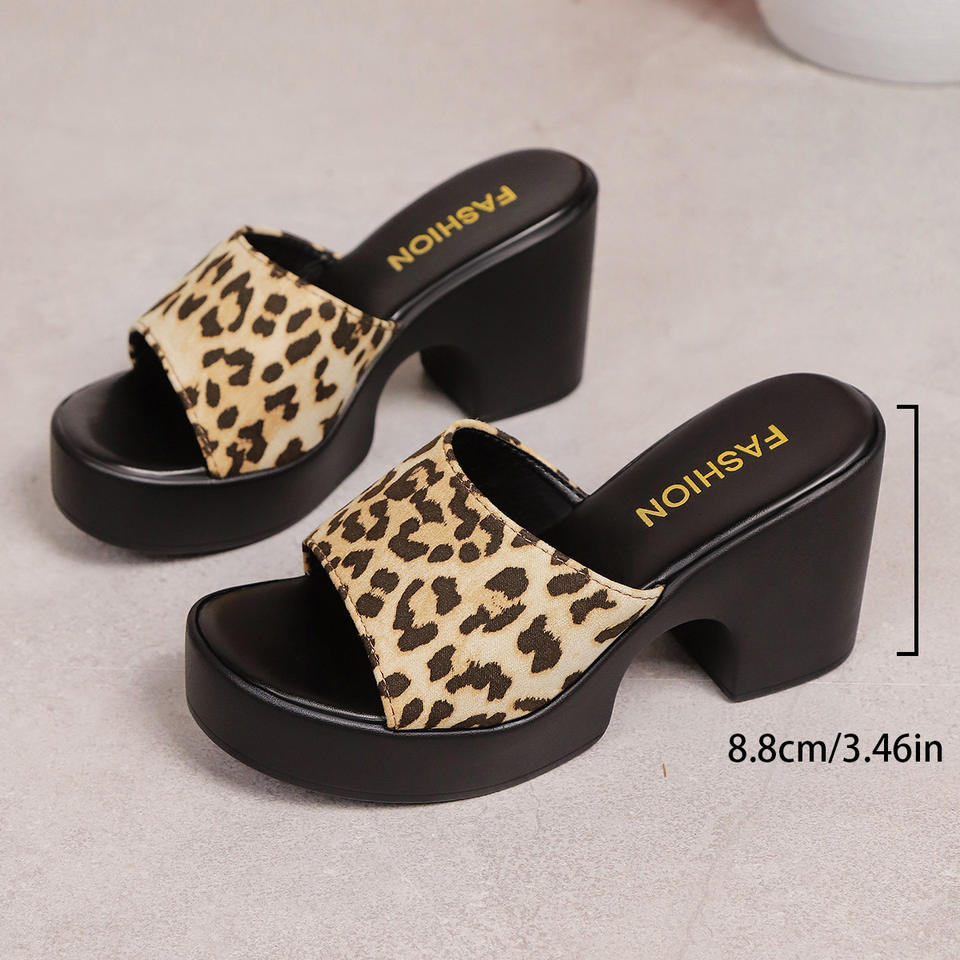 รองเท้าแตะส้นสูงแฟชั่นมาใหม่ไซส์พิเศษ, รองเท้าส้นหนาลายเสือดาวฤดูร้อนที่สง่างาม