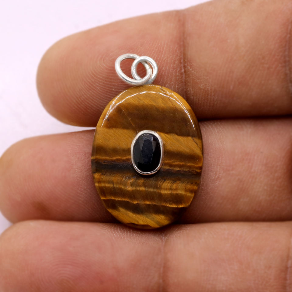 Item Name:Natural Tiger Eye and Blue Sapphire Gemstone Pendant In 925 Silver