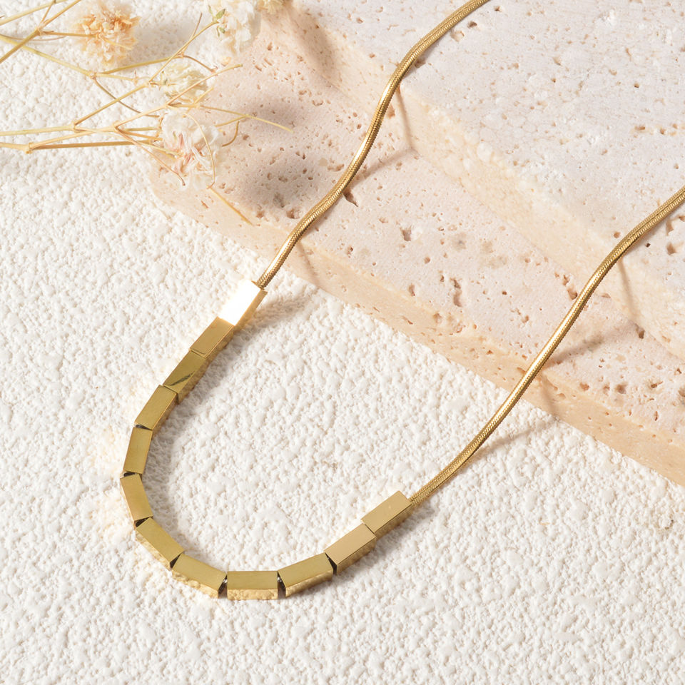 สร้อยคอแฟชั่นใหม่ สไตล์เรียบหรู จี้สแตนเลสชุบทอง 18k สำหรับผู้หญิง