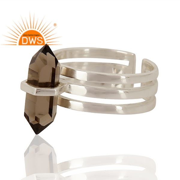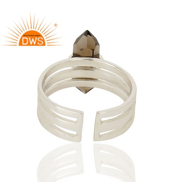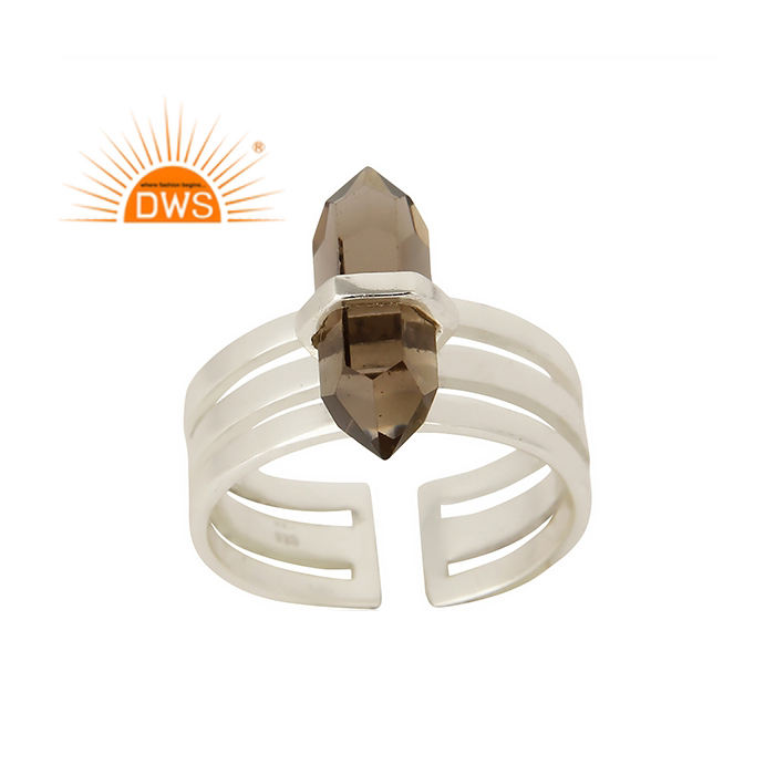 แหวนพลอยควอตซ์สโมควอทซ์สีเงินสเตอร์ลิงธรรมชาติสินค้ามาใหม่ผู้ผลิตเครื่องประดับตามสั่ง