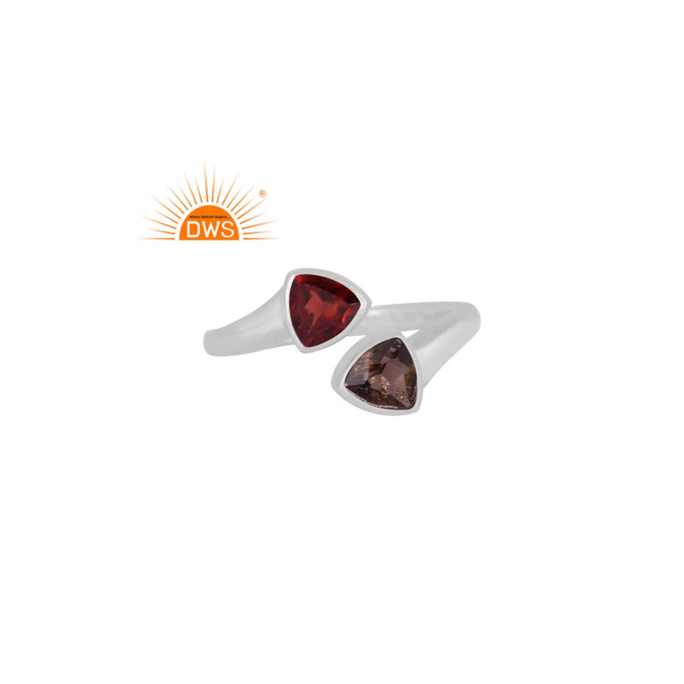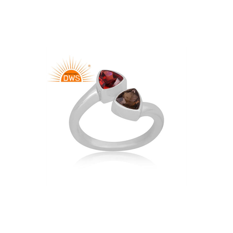 แหวนควอตซ์แบบสโมคและโกเมนปรับได้แหวนเงินแท้คุณภาพดีสินค้ามาใหม่