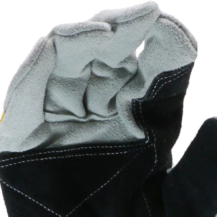 ถุงมือทำงานหนังวัวพร้อมสายรัดข้อมือเพื่อความปลอดภัยถุงมือทำงานทนทานจากการก่อสร้างทางอุตสาหกรรมมาใหม่
