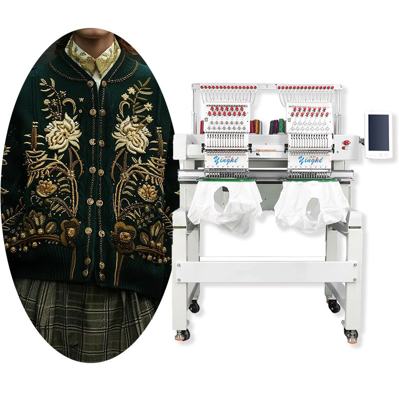 เครื่องปักเสื้อยืดแบบแบน2หัวเครื่องปักคอมพิวเตอร์ดิจิตอล15เข็มเครื่องปักด้วยความเร็วสูง