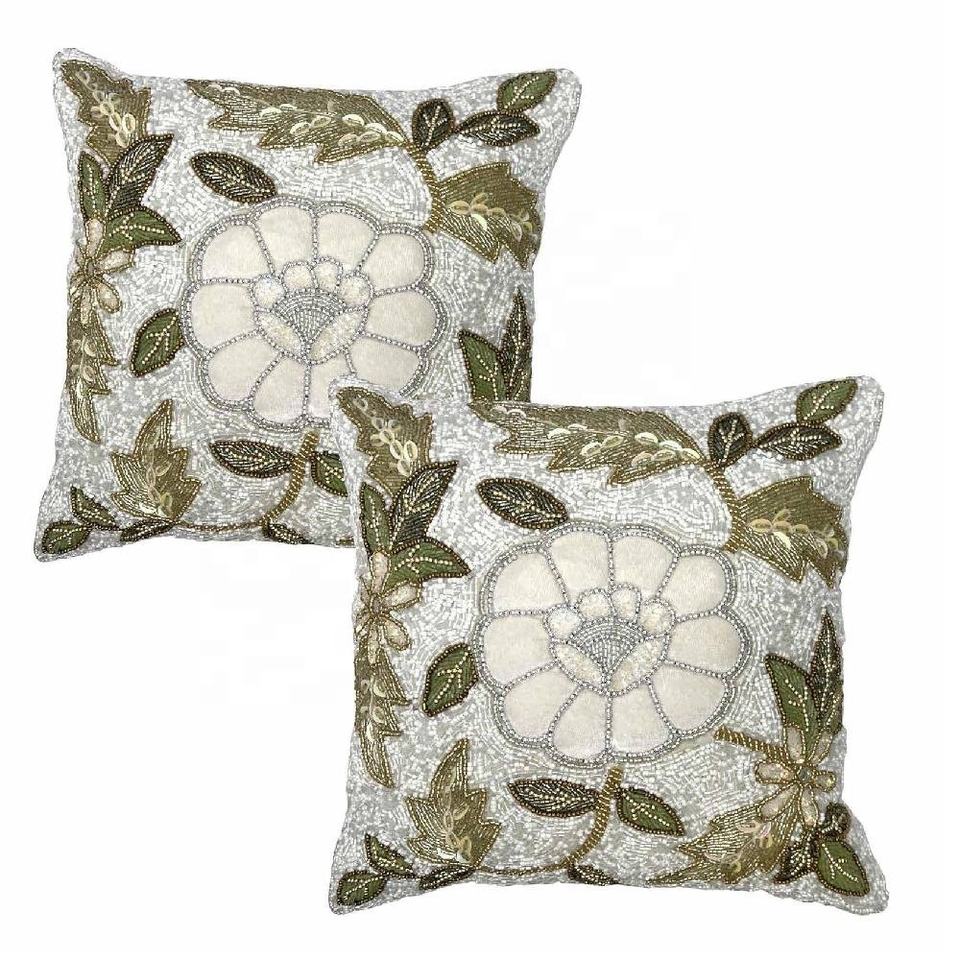 ปลอกหมอนอิงลายดอกไม้ประดับลูกปัดแก้วแบบใหม่ ปลอกหมอนอิงตกแต่งประดับลูกปัด สำหรับโซฟา เก้าอี้ หรือเตียง