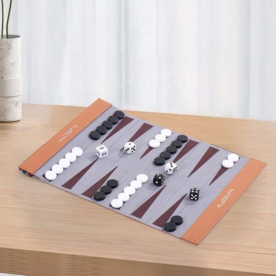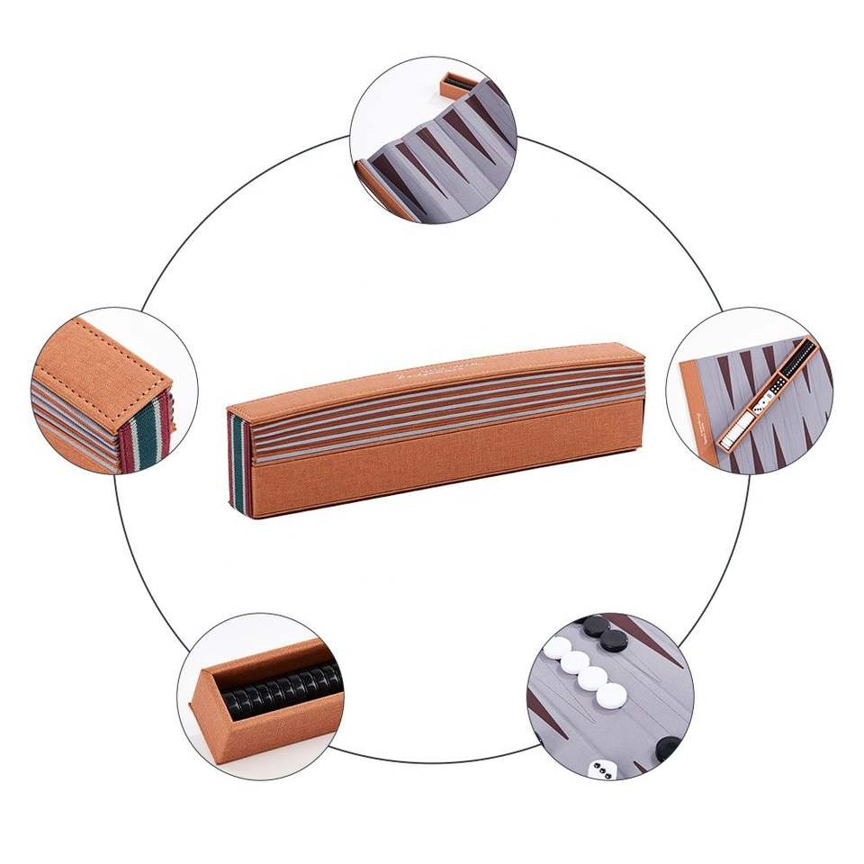 New Arrival Foldable Outdoor Board Games Chess Backgammon Sets Custom Handmade Pu Leather Durable Luxury Roll up