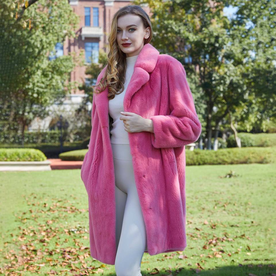 มาใหม่เต็มผิวผู้หญิงยาวเสื้อแจ็คเก็ตขนมิงค์จริง
