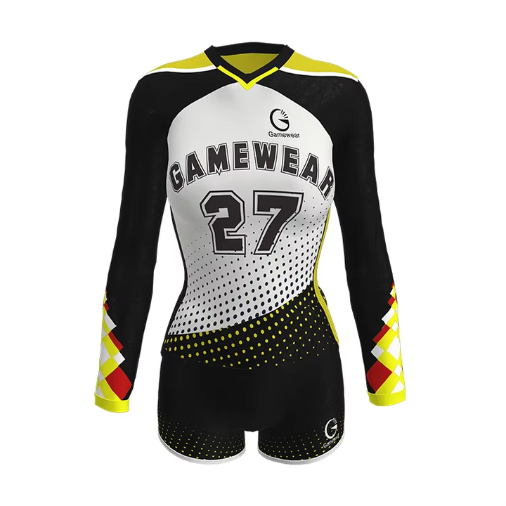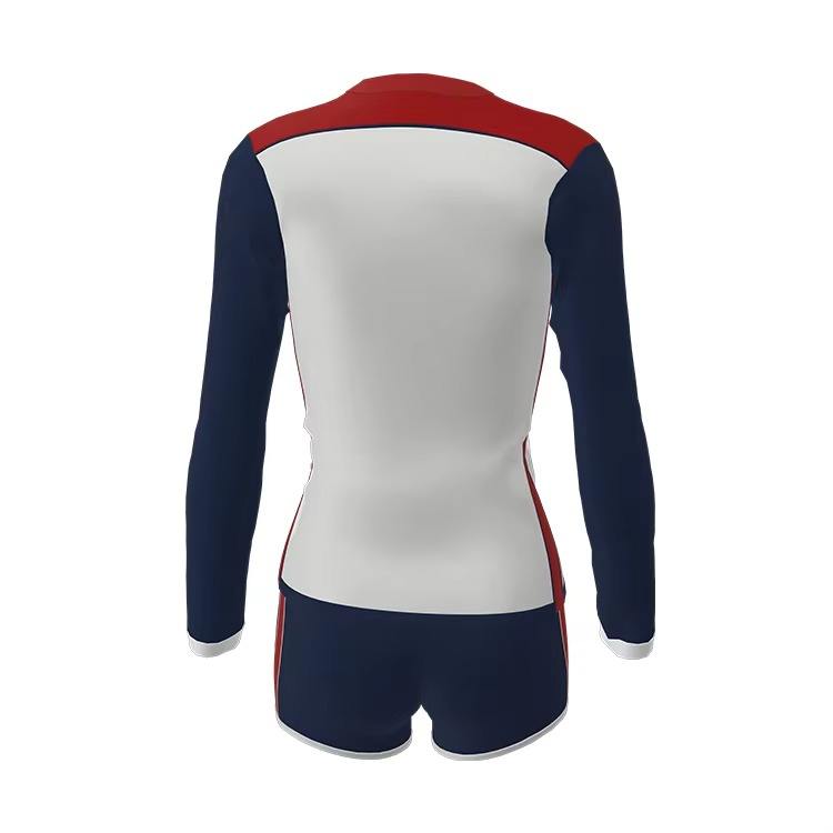 ชุดเครื่องแบบวอลเลย์บอลแขนเต็มสำหรับผู้หญิงเครื่องแบบทีมพิมพ์ซับลิเมชันชุดโพลีเอสเตอร์ระบายอากาศ