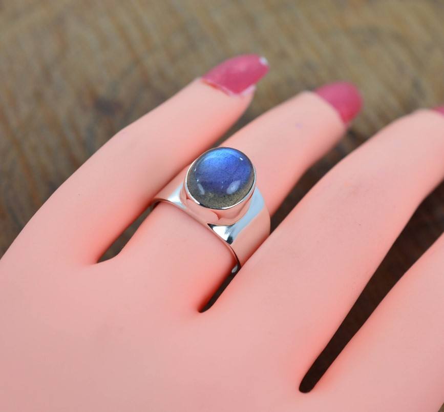 แหวนเงินลาบราดอไรต์สีน้ำเงิน