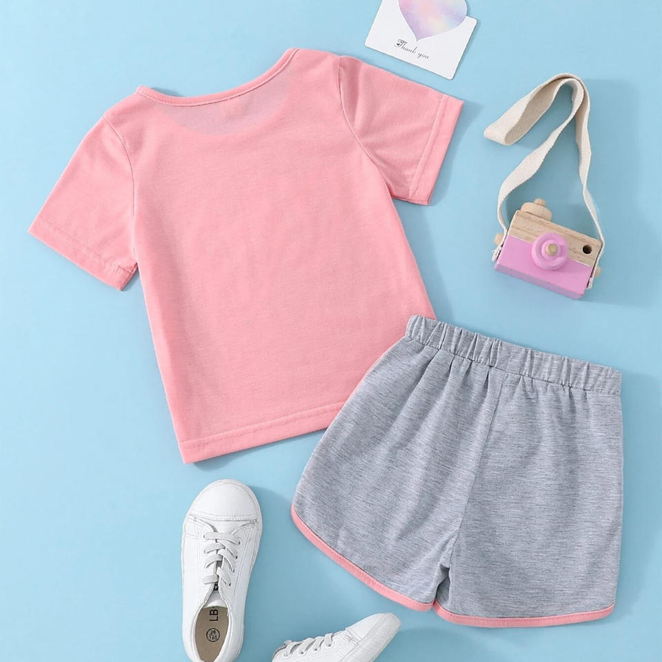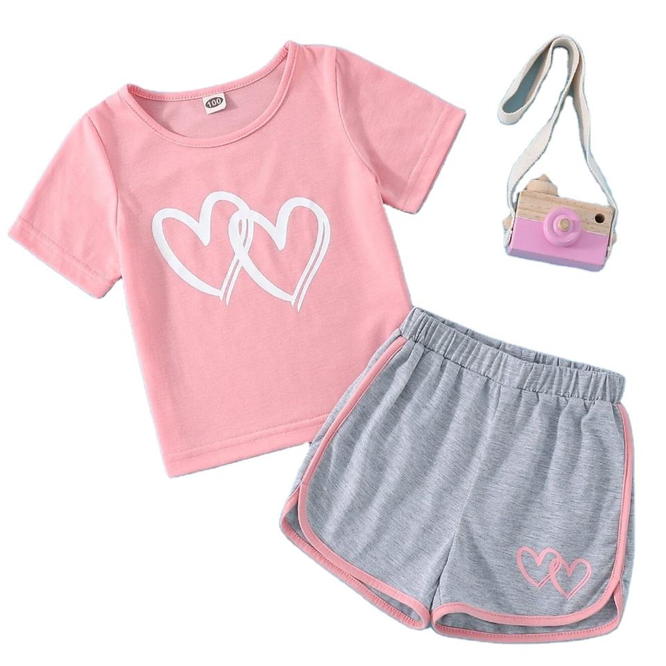 New Arrival Girls Clothing Sets Color Block Printed T-Shirts Shorts Lace Customizable Logo Twin Two-Piece Sets Low Price